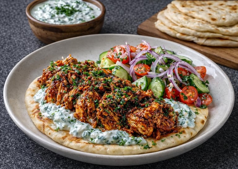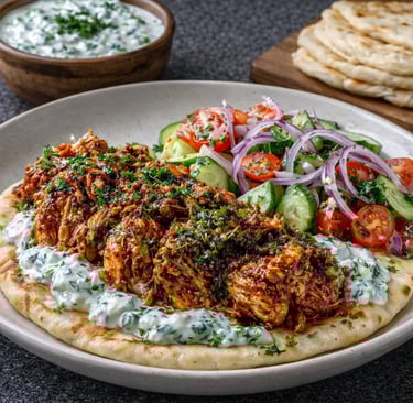 • Shawarma-spiced pulled chicken